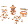 Adopting a high-end design style, it recreates a realistic shopping environment with authentic customer flow (pick → weigh → check out). It helps children develop financial literacy, communication skills, and an understanding of social rules. Following the logic of a real boutique supermarket, the space is divided into a fresh food area, a bakery/deli island, a checkout zone, and shelf areas.