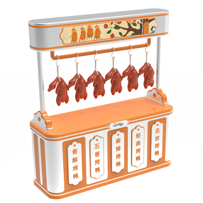 Inspired by Beijing’s traditional "hanging oven roast duck", the design uses "palace wall red" and "flowing gold" as the main colors. It focuses on recreating the complete authentic duck‑roasting process – from air‑drying and hanging, to oven roasting, to slicing and rolling – allowing children to appreciate the "craftsmanship" and "ritual" of Chinese cuisine.